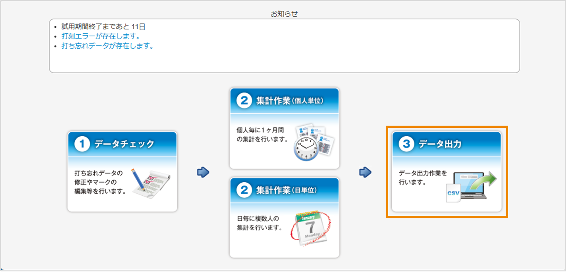 打刻/集計データ出力(CSV)